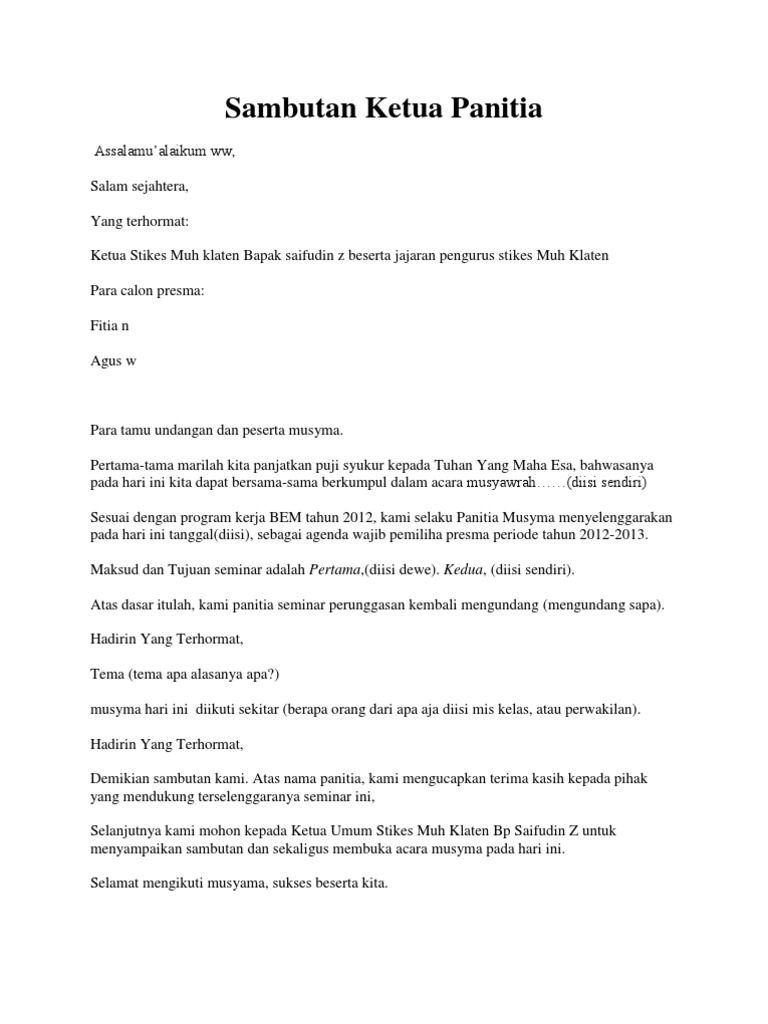 Contoh Pidato Sambutan Ketua Panitia 1 Pdf